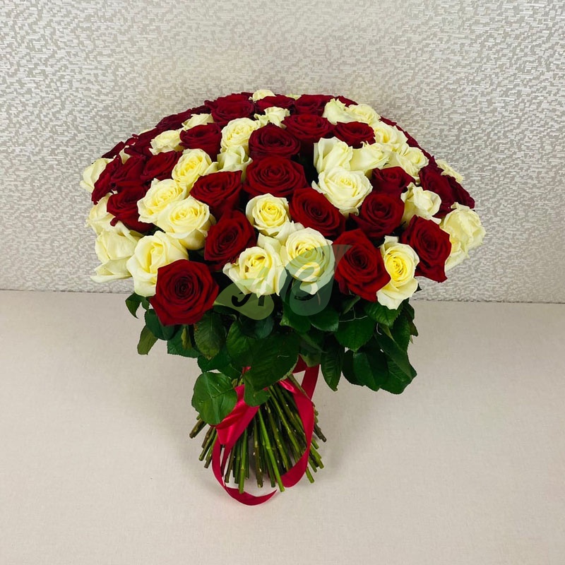Букет "101 красная и белая роза" (60 см)