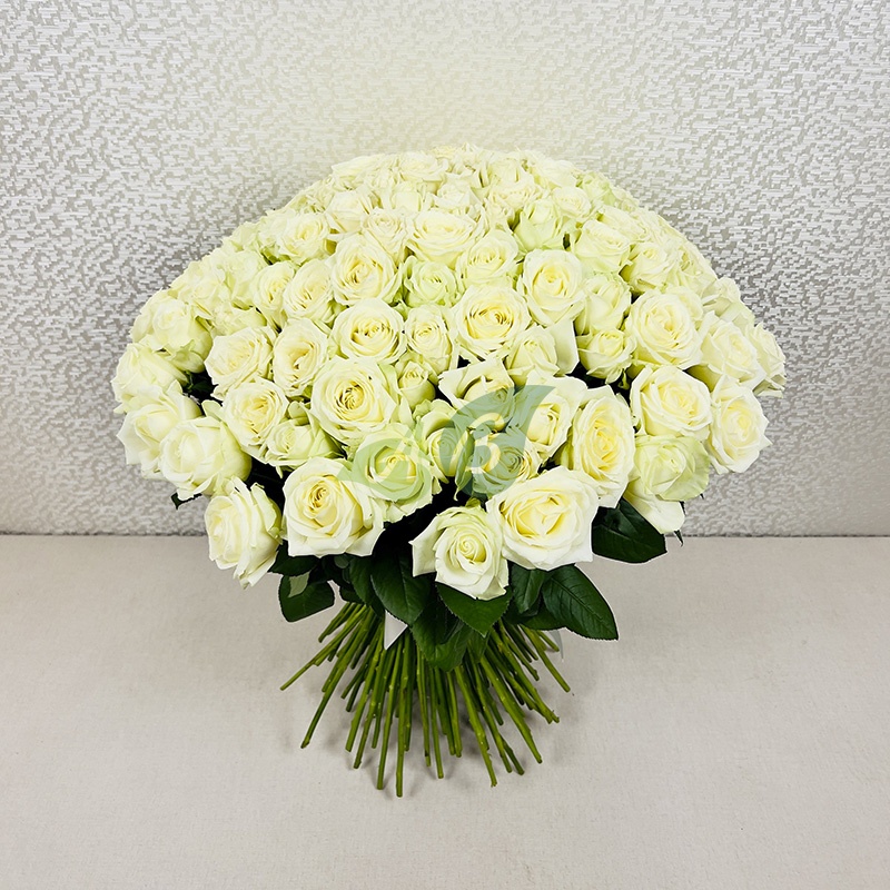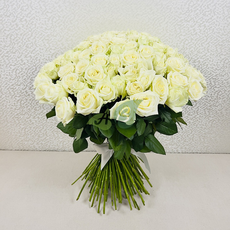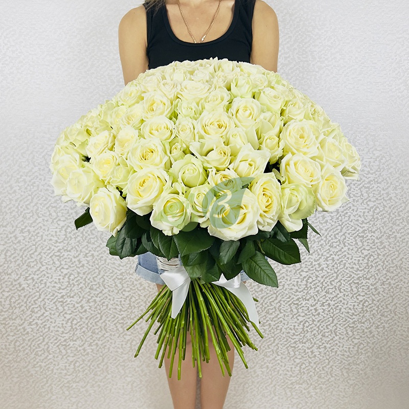 - Роза - 151 штука, цвет - белый, длина стебля - 60 см;